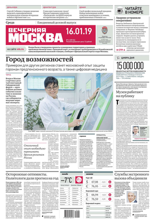 «Вечерняя Москва» — ежедневная российская вечерняя газета, старейшее из вечерних изданий в России, учрежденное в 1923 году. Выходит пять дней в неделю, кроме субботы и воскресенья. Отличается тем, что рассказывает о событиях еще не завершившегося дня. Оперативно освещает хронику и особенности жизни Москвы, охватывает все слои общества и большинство профессиональных и возрастных групп читателей.Издание представлено тремя выпусками – утренним ежедневным, вечерним (выходит три раза в неделю), еженедельным (выходит по четвергам).