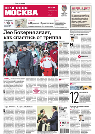 «Вечерняя Москва» — ежедневная российская вечерняя газета, старейшее из вечерних изданий в России, учрежденное в 1923 году. Выходит пять дней в неделю, кроме субботы и воскресенья. Отличается тем, что рассказывает о событиях еще не завершившегося дня. Оперативно освещает хронику и особенности жизни Москвы, охватывает все слои общества и большинство профессиональных и возрастных групп читателей.Издание представлено тремя выпусками – утренним ежедневным, вечерним (выходит три раза в неделю), еженедельным (выходит по четвергам).
