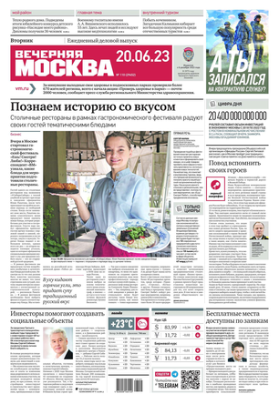 «Вечерняя Москва» — ежедневная российская вечерняя газета, старейшее из вечерних изданий в России, учрежденное в 1923 году. Выходит пять дней в неделю, кроме субботы и воскресенья. Отличается тем, что рассказывает о событиях еще не завершившегося дня. Оперативно освещает хронику и особенности жизни Москвы, охватывает все слои общества и большинство профессиональных и возрастных групп читателей.Издание представлено тремя выпусками – утренним ежедневным, вечерним (выходит три раза в неделю), еженедельным (выходит по четвергам).