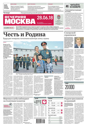 «Вечерняя Москва» — ежедневная российская вечерняя газета, старейшее из вечерних изданий в России, учрежденное в 1923 году. Выходит пять дней в неделю, кроме субботы и воскресенья. Отличается тем, что рассказывает о событиях еще не завершившегося дня. Оперативно освещает хронику и особенности жизни Москвы, охватывает все слои общества и большинство профессиональных и возрастных групп читателей.Издание представлено тремя выпусками – утренним ежедневным, вечерним (выходит три раза в неделю), еженедельным (выходит по четвергам).