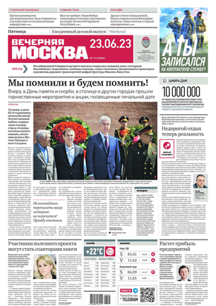 «Вечерняя Москва» — ежедневная российская вечерняя газета, старейшее из вечерних изданий в России, учрежденное в 1923 году. Выходит пять дней в неделю, кроме субботы и воскресенья. Отличается тем, что рассказывает о событиях еще не завершившегося дня. Оперативно освещает хронику и особенности жизни Москвы, охватывает все слои общества и большинство профессиональных и возрастных групп читателей.Издание представлено тремя выпусками – утренним ежедневным, вечерним (выходит три раза в неделю), еженедельным (выходит по четвергам).