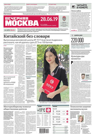 «Вечерняя Москва» — ежедневная российская вечерняя газета, старейшее из вечерних изданий в России, учрежденное в 1923 году. Выходит пять дней в неделю, кроме субботы и воскресенья. Отличается тем, что рассказывает о событиях еще не завершившегося дня. Оперативно освещает хронику и особенности жизни Москвы, охватывает все слои общества и большинство профессиональных и возрастных групп читателей.Издание представлено тремя выпусками – утренним ежедневным, вечерним (выходит три раза в неделю), еженедельным (выходит по четвергам).