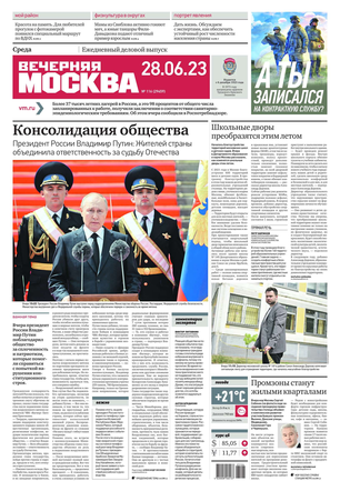 «Вечерняя Москва» — ежедневная российская вечерняя газета, старейшее из вечерних изданий в России, учрежденное в 1923 году. Выходит пять дней в неделю, кроме субботы и воскресенья. Отличается тем, что рассказывает о событиях еще не завершившегося дня. Оперативно освещает хронику и особенности жизни Москвы, охватывает все слои общества и большинство профессиональных и возрастных групп читателей.Издание представлено тремя выпусками – утренним ежедневным, вечерним (выходит три раза в неделю), еженедельным (выходит по четвергам).