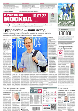 «Вечерняя Москва» — ежедневная российская вечерняя газета, старейшее из вечерних изданий в России, учрежденное в 1923 году. Выходит пять дней в неделю, кроме субботы и воскресенья. Отличается тем, что рассказывает о событиях еще не завершившегося дня. Оперативно освещает хронику и особенности жизни Москвы, охватывает все слои общества и большинство профессиональных и возрастных групп читателей.Издание представлено тремя выпусками – утренним ежедневным, вечерним (выходит три раза в неделю), еженедельным (выходит по четвергам).