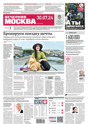 «Вечерняя Москва» — ежедневная российская вечерняя газета, старейшее из вечерних изданий в России, учрежденное в 1923 году. Выходит пять дней в неделю, кроме субботы и воскресенья. Отличается тем, что рассказывает о событиях еще не завершившегося дня. Оперативно освещает хронику и особенности жизни Москвы, охватывает все слои общества и большинство профессиональных и возрастных групп читателей.Издание представлено тремя выпусками – утренним ежедневным, вечерним (выходит три раза в неделю), еженедельным (выходит по четвергам).
