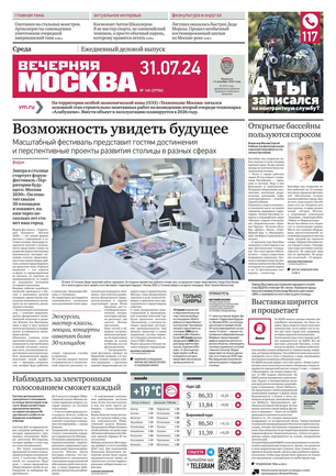 «Вечерняя Москва» — ежедневная российская вечерняя газета, старейшее из вечерних изданий в России, учрежденное в 1923 году. Выходит пять дней в неделю, кроме субботы и воскресенья. Отличается тем, что рассказывает о событиях еще не завершившегося дня. Оперативно освещает хронику и особенности жизни Москвы, охватывает все слои общества и большинство профессиональных и возрастных групп читателей.Издание представлено тремя выпусками – утренним ежедневным, вечерним (выходит три раза в неделю), еженедельным (выходит по четвергам).