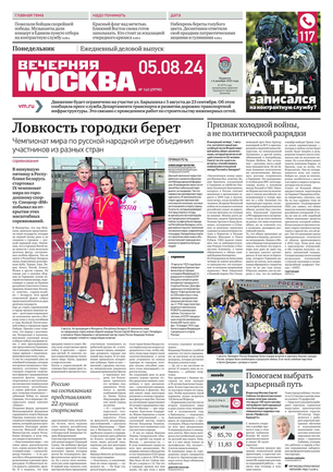 «Вечерняя Москва» — ежедневная российская вечерняя газета, старейшее из вечерних изданий в России, учрежденное в 1923 году. Выходит пять дней в неделю, кроме субботы и воскресенья. Отличается тем, что рассказывает о событиях еще не завершившегося дня. Оперативно освещает хронику и особенности жизни Москвы, охватывает все слои общества и большинство профессиональных и возрастных групп читателей.Издание представлено тремя выпусками – утренним ежедневным, вечерним (выходит три раза в неделю), еженедельным (выходит по четвергам).