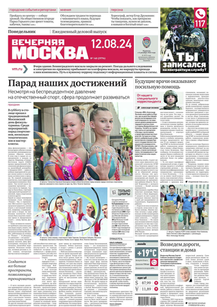 «Вечерняя Москва» — ежедневная российская вечерняя газета, старейшее из вечерних изданий в России, учрежденное в 1923 году. Выходит пять дней в неделю, кроме субботы и воскресенья. Отличается тем, что рассказывает о событиях еще не завершившегося дня. Оперативно освещает хронику и особенности жизни Москвы, охватывает все слои общества и большинство профессиональных и возрастных групп читателей.Издание представлено тремя выпусками – утренним ежедневным, вечерним (выходит три раза в неделю), еженедельным (выходит по четвергам).
