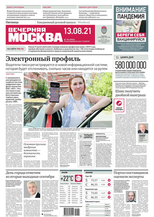 «Вечерняя Москва» — ежедневная российская вечерняя газета, старейшее из вечерних изданий в России, учрежденное в 1923 году. Выходит пять дней в неделю, кроме субботы и воскресенья. Отличается тем, что рассказывает о событиях еще не завершившегося дня. Оперативно освещает хронику и особенности жизни Москвы, охватывает все слои общества и большинство профессиональных и возрастных групп читателей.Издание представлено тремя выпусками – утренним ежедневным, вечерним (выходит три раза в неделю), еженедельным (выходит по четвергам).