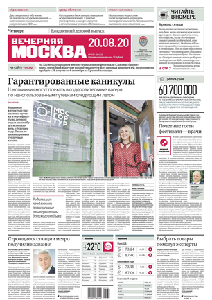«Вечерняя Москва» — ежедневная российская вечерняя газета, старейшее из вечерних изданий в России, учрежденное в 1923 году. Выходит пять дней в неделю, кроме субботы и воскресенья. Отличается тем, что рассказывает о событиях еще не завершившегося дня. Оперативно освещает хронику и особенности жизни Москвы, охватывает все слои общества и большинство профессиональных и возрастных групп читателей.Издание представлено тремя выпусками – утренним ежедневным, вечерним (выходит три раза в неделю), еженедельным (выходит по четвергам).