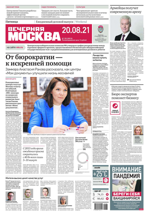 «Вечерняя Москва» — ежедневная российская вечерняя газета, старейшее из вечерних изданий в России, учрежденное в 1923 году. Выходит пять дней в неделю, кроме субботы и воскресенья. Отличается тем, что рассказывает о событиях еще не завершившегося дня. Оперативно освещает хронику и особенности жизни Москвы, охватывает все слои общества и большинство профессиональных и возрастных групп читателей.Издание представлено тремя выпусками – утренним ежедневным, вечерним (выходит три раза в неделю), еженедельным (выходит по четвергам).