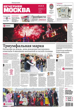 «Вечерняя Москва» — ежедневная российская вечерняя газета, старейшее из вечерних изданий в России, учрежденное в 1923 году. Выходит пять дней в неделю, кроме субботы и воскресенья. Отличается тем, что рассказывает о событиях еще не завершившегося дня. Оперативно освещает хронику и особенности жизни Москвы, охватывает все слои общества и большинство профессиональных и возрастных групп читателей.Издание представлено тремя выпусками – утренним ежедневным, вечерним (выходит три раза в неделю), еженедельным (выходит по четвергам).