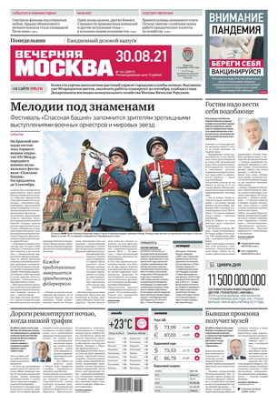 «Вечерняя Москва» — ежедневная российская вечерняя газета, старейшее из вечерних изданий в России, учрежденное в 1923 году. Выходит пять дней в неделю, кроме субботы и воскресенья. Отличается тем, что рассказывает о событиях еще не завершившегося дня. Оперативно освещает хронику и особенности жизни Москвы, охватывает все слои общества и большинство профессиональных и возрастных групп читателей.Издание представлено тремя выпусками – утренним ежедневным, вечерним (выходит три раза в неделю), еженедельным (выходит по четвергам).