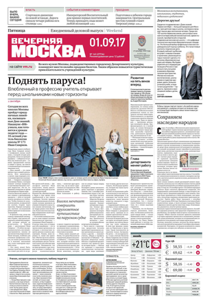 «Вечерняя Москва» — ежедневная российская вечерняя газета, старейшее из вечерних изданий в России, учрежденное в 1923 году. Выходит пять дней в неделю, кроме субботы и воскресенья. Отличается тем, что рассказывает о событиях еще не завершившегося дня. Оперативно освещает хронику и особенности жизни Москвы, охватывает все слои общества и большинство профессиональных и возрастных групп читателей.Издание представлено тремя выпусками – утренним ежедневным, вечерним (выходит три раза в неделю), еженедельным (выходит по четвергам).