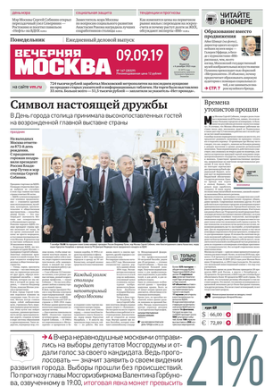 «Вечерняя Москва» — ежедневная российская вечерняя газета, старейшее из вечерних изданий в России, учрежденное в 1923 году. Выходит пять дней в неделю, кроме субботы и воскресенья. Отличается тем, что рассказывает о событиях еще не завершившегося дня. Оперативно освещает хронику и особенности жизни Москвы, охватывает все слои общества и большинство профессиональных и возрастных групп читателей.Издание представлено тремя выпусками – утренним ежедневным, вечерним (выходит три раза в неделю), еженедельным (выходит по четвергам).