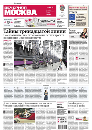 «Вечерняя Москва» — ежедневная российская вечерняя газета, старейшее из вечерних изданий в России, учрежденное в 1923 году. Выходит пять дней в неделю, кроме субботы и воскресенья. Отличается тем, что рассказывает о событиях еще не завершившегося дня. Оперативно освещает хронику и особенности жизни Москвы, охватывает все слои общества и большинство профессиональных и возрастных групп читателей.Издание представлено тремя выпусками – утренним ежедневным, вечерним (выходит три раза в неделю), еженедельным (выходит по четвергам).
