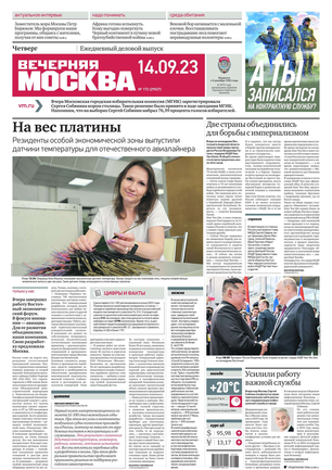 «Вечерняя Москва» — ежедневная российская вечерняя газета, старейшее из вечерних изданий в России, учрежденное в 1923 году. Выходит пять дней в неделю, кроме субботы и воскресенья. Отличается тем, что рассказывает о событиях еще не завершившегося дня. Оперативно освещает хронику и особенности жизни Москвы, охватывает все слои общества и большинство профессиональных и возрастных групп читателей.Издание представлено тремя выпусками – утренним ежедневным, вечерним (выходит три раза в неделю), еженедельным (выходит по четвергам).