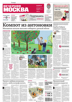 «Вечерняя Москва» — ежедневная российская вечерняя газета, старейшее из вечерних изданий в России, учрежденное в 1923 году. Выходит пять дней в неделю, кроме субботы и воскресенья. Отличается тем, что рассказывает о событиях еще не завершившегося дня. Оперативно освещает хронику и особенности жизни Москвы, охватывает все слои общества и большинство профессиональных и возрастных групп читателей.Издание представлено тремя выпусками – утренним ежедневным, вечерним (выходит три раза в неделю), еженедельным (выходит по четвергам).