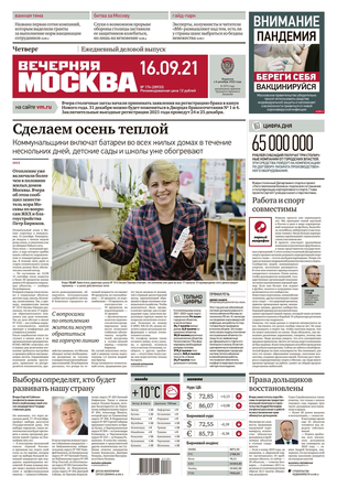 «Вечерняя Москва» — ежедневная российская вечерняя газета, старейшее из вечерних изданий в России, учрежденное в 1923 году. Выходит пять дней в неделю, кроме субботы и воскресенья. Отличается тем, что рассказывает о событиях еще не завершившегося дня. Оперативно освещает хронику и особенности жизни Москвы, охватывает все слои общества и большинство профессиональных и возрастных групп читателей.Издание представлено тремя выпусками – утренним ежедневным, вечерним (выходит три раза в неделю), еженедельным (выходит по четвергам).