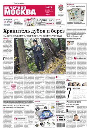 «Вечерняя Москва» — ежедневная российская вечерняя газета, старейшее из вечерних изданий в России, учрежденное в 1923 году. Выходит пять дней в неделю, кроме субботы и воскресенья. Отличается тем, что рассказывает о событиях еще не завершившегося дня. Оперативно освещает хронику и особенности жизни Москвы, охватывает все слои общества и большинство профессиональных и возрастных групп читателей.Издание представлено тремя выпусками – утренним ежедневным, вечерним (выходит три раза в неделю), еженедельным (выходит по четвергам).