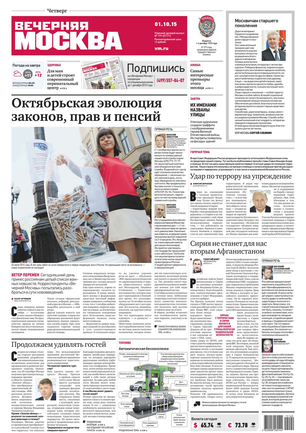 «Вечерняя Москва» — ежедневная российская вечерняя газета, старейшее из вечерних изданий в России, учрежденное в 1923 году. Выходит пять дней в неделю, кроме субботы и воскресенья. Отличается тем, что рассказывает о событиях еще не завершившегося дня. Оперативно освещает хронику и особенности жизни Москвы, охватывает все слои общества и большинство профессиональных и возрастных групп читателей.Издание представлено тремя выпусками – утренним ежедневным, вечерним (выходит три раза в неделю), еженедельным (выходит по четвергам).