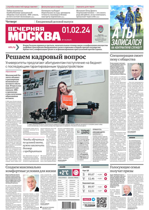 «Вечерняя Москва» — ежедневная российская вечерняя газета, старейшее из вечерних изданий в России, учрежденное в 1923 году. Выходит пять дней в неделю, кроме субботы и воскресенья. Отличается тем, что рассказывает о событиях еще не завершившегося дня. Оперативно освещает хронику и особенности жизни Москвы, охватывает все слои общества и большинство профессиональных и возрастных групп читателей.Издание представлено тремя выпусками – утренним ежедневным, вечерним (выходит три раза в неделю), еженедельным (выходит по четвергам).
