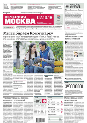 «Вечерняя Москва» — ежедневная российская вечерняя газета, старейшее из вечерних изданий в России, учрежденное в 1923 году. Выходит пять дней в неделю, кроме субботы и воскресенья. Отличается тем, что рассказывает о событиях еще не завершившегося дня. Оперативно освещает хронику и особенности жизни Москвы, охватывает все слои общества и большинство профессиональных и возрастных групп читателей.Издание представлено тремя выпусками – утренним ежедневным, вечерним (выходит три раза в неделю), еженедельным (выходит по четвергам).