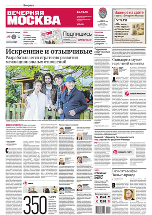 «Вечерняя Москва» — ежедневная российская вечерняя газета, старейшее из вечерних изданий в России, учрежденное в 1923 году. Выходит пять дней в неделю, кроме субботы и воскресенья. Отличается тем, что рассказывает о событиях еще не завершившегося дня. Оперативно освещает хронику и особенности жизни Москвы, охватывает все слои общества и большинство профессиональных и возрастных групп читателей.Издание представлено тремя выпусками – утренним ежедневным, вечерним (выходит три раза в неделю), еженедельным (выходит по четвергам).