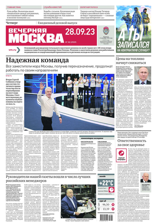 «Вечерняя Москва» — ежедневная российская вечерняя газета, старейшее из вечерних изданий в России, учрежденное в 1923 году. Выходит пять дней в неделю, кроме субботы и воскресенья. Отличается тем, что рассказывает о событиях еще не завершившегося дня. Оперативно освещает хронику и особенности жизни Москвы, охватывает все слои общества и большинство профессиональных и возрастных групп читателей.Издание представлено тремя выпусками – утренним ежедневным, вечерним (выходит три раза в неделю), еженедельным (выходит по четвергам).