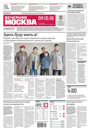 «Вечерняя Москва» — ежедневная российская вечерняя газета, старейшее из вечерних изданий в России, учрежденное в 1923 году. Выходит пять дней в неделю, кроме субботы и воскресенья. Отличается тем, что рассказывает о событиях еще не завершившегося дня. Оперативно освещает хронику и особенности жизни Москвы, охватывает все слои общества и большинство профессиональных и возрастных групп читателей.Издание представлено тремя выпусками – утренним ежедневным, вечерним (выходит три раза в неделю), еженедельным (выходит по четвергам).