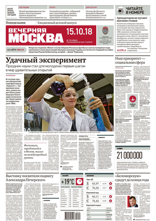 «Вечерняя Москва» — ежедневная российская вечерняя газета, старейшее из вечерних изданий в России, учрежденное в 1923 году. Выходит пять дней в неделю, кроме субботы и воскресенья. Отличается тем, что рассказывает о событиях еще не завершившегося дня. Оперативно освещает хронику и особенности жизни Москвы, охватывает все слои общества и большинство профессиональных и возрастных групп читателей.Издание представлено тремя выпусками – утренним ежедневным, вечерним (выходит три раза в неделю), еженедельным (выходит по четвергам).