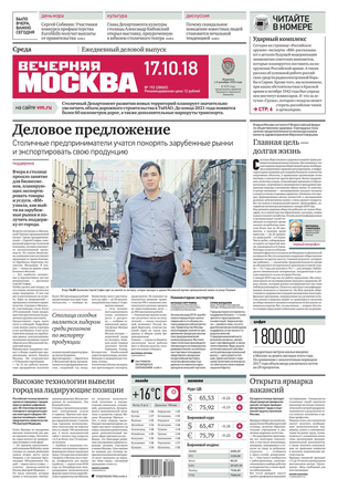 «Вечерняя Москва» — ежедневная российская вечерняя газета, старейшее из вечерних изданий в России, учрежденное в 1923 году. Выходит пять дней в неделю, кроме субботы и воскресенья. Отличается тем, что рассказывает о событиях еще не завершившегося дня. Оперативно освещает хронику и особенности жизни Москвы, охватывает все слои общества и большинство профессиональных и возрастных групп читателей.Издание представлено тремя выпусками – утренним ежедневным, вечерним (выходит три раза в неделю), еженедельным (выходит по четвергам).