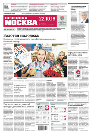 «Вечерняя Москва» — ежедневная российская вечерняя газета, старейшее из вечерних изданий в России, учрежденное в 1923 году. Выходит пять дней в неделю, кроме субботы и воскресенья. Отличается тем, что рассказывает о событиях еще не завершившегося дня. Оперативно освещает хронику и особенности жизни Москвы, охватывает все слои общества и большинство профессиональных и возрастных групп читателей.Издание представлено тремя выпусками – утренним ежедневным, вечерним (выходит три раза в неделю), еженедельным (выходит по четвергам).
