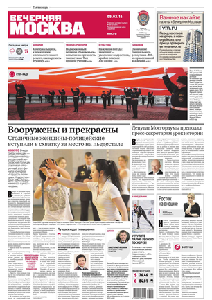 «Вечерняя Москва» — ежедневная российская вечерняя газета, старейшее из вечерних изданий в России, учрежденное в 1923 году. Выходит пять дней в неделю, кроме субботы и воскресенья. Отличается тем, что рассказывает о событиях еще не завершившегося дня. Оперативно освещает хронику и особенности жизни Москвы, охватывает все слои общества и большинство профессиональных и возрастных групп читателей.Издание представлено тремя выпусками – утренним ежедневным, вечерним (выходит три раза в неделю), еженедельным (выходит по четвергам).