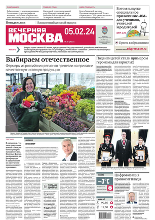 «Вечерняя Москва» — ежедневная российская вечерняя газета, старейшее из вечерних изданий в России, учрежденное в 1923 году. Выходит пять дней в неделю, кроме субботы и воскресенья. Отличается тем, что рассказывает о событиях еще не завершившегося дня. Оперативно освещает хронику и особенности жизни Москвы, охватывает все слои общества и большинство профессиональных и возрастных групп читателей.Издание представлено тремя выпусками – утренним ежедневным, вечерним (выходит три раза в неделю), еженедельным (выходит по четвергам).