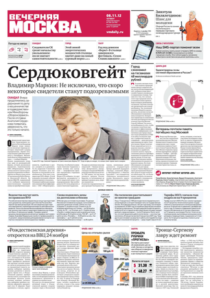 «Вечерняя Москва» — ежедневная российская вечерняя газета, старейшее из вечерних изданий в России, учрежденное в 1923 году. Выходит пять дней в неделю, кроме субботы и воскресенья. Отличается тем, что рассказывает о событиях еще не завершившегося дня. Оперативно освещает хронику и особенности жизни Москвы, охватывает все слои общества и большинство профессиональных и возрастных групп читателей.Издание представлено тремя выпусками – утренним ежедневным, вечерним (выходит три раза в неделю), еженедельным (выходит по четвергам).