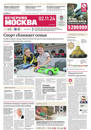 «Вечерняя Москва» — ежедневная российская вечерняя газета, старейшее из вечерних изданий в России, учрежденное в 1923 году. Выходит пять дней в неделю, кроме субботы и воскресенья. Отличается тем, что рассказывает о событиях еще не завершившегося дня. Оперативно освещает хронику и особенности жизни Москвы, охватывает все слои общества и большинство профессиональных и возрастных групп читателей.Издание представлено тремя выпусками – утренним ежедневным, вечерним (выходит три раза в неделю), еженедельным (выходит по четвергам).