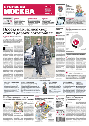 «Вечерняя Москва» — ежедневная российская вечерняя газета, старейшее из вечерних изданий в России, учрежденное в 1923 году. Выходит пять дней в неделю, кроме субботы и воскресенья. Отличается тем, что рассказывает о событиях еще не завершившегося дня. Оперативно освещает хронику и особенности жизни Москвы, охватывает все слои общества и большинство профессиональных и возрастных групп читателей.Издание представлено тремя выпусками – утренним ежедневным, вечерним (выходит три раза в неделю), еженедельным (выходит по четвергам).