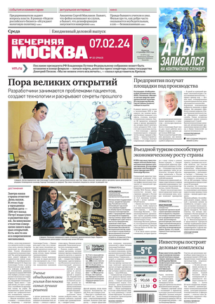 «Вечерняя Москва» — ежедневная российская вечерняя газета, старейшее из вечерних изданий в России, учрежденное в 1923 году. Выходит пять дней в неделю, кроме субботы и воскресенья. Отличается тем, что рассказывает о событиях еще не завершившегося дня. Оперативно освещает хронику и особенности жизни Москвы, охватывает все слои общества и большинство профессиональных и возрастных групп читателей.Издание представлено тремя выпусками – утренним ежедневным, вечерним (выходит три раза в неделю), еженедельным (выходит по четвергам).