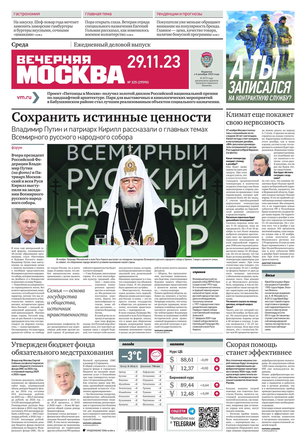 «Вечерняя Москва» — ежедневная российская вечерняя газета, старейшее из вечерних изданий в России, учрежденное в 1923 году. Выходит пять дней в неделю, кроме субботы и воскресенья. Отличается тем, что рассказывает о событиях еще не завершившегося дня. Оперативно освещает хронику и особенности жизни Москвы, охватывает все слои общества и большинство профессиональных и возрастных групп читателей.Издание представлено тремя выпусками – утренним ежедневным, вечерним (выходит три раза в неделю), еженедельным (выходит по четвергам).