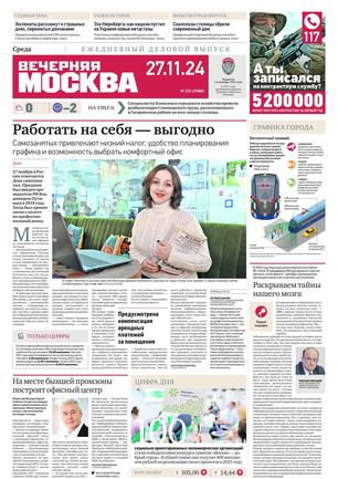«Вечерняя Москва» — ежедневная российская вечерняя газета, старейшее из вечерних изданий в России, учрежденное в 1923 году. Выходит пять дней в неделю, кроме субботы и воскресенья. Отличается тем, что рассказывает о событиях еще не завершившегося дня. Оперативно освещает хронику и особенности жизни Москвы, охватывает все слои общества и большинство профессиональных и возрастных групп читателей.Издание представлено тремя выпусками – утренним ежедневным, вечерним (выходит три раза в неделю), еженедельным (выходит по четвергам).