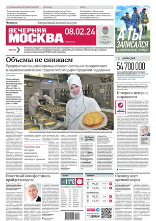 «Вечерняя Москва» — ежедневная российская вечерняя газета, старейшее из вечерних изданий в России, учрежденное в 1923 году. Выходит пять дней в неделю, кроме субботы и воскресенья. Отличается тем, что рассказывает о событиях еще не завершившегося дня. Оперативно освещает хронику и особенности жизни Москвы, охватывает все слои общества и большинство профессиональных и возрастных групп читателей.Издание представлено тремя выпусками – утренним ежедневным, вечерним (выходит три раза в неделю), еженедельным (выходит по четвергам).