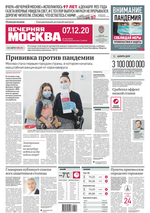 «Вечерняя Москва» — ежедневная российская вечерняя газета, старейшее из вечерних изданий в России, учрежденное в 1923 году. Выходит пять дней в неделю, кроме субботы и воскресенья. Отличается тем, что рассказывает о событиях еще не завершившегося дня. Оперативно освещает хронику и особенности жизни Москвы, охватывает все слои общества и большинство профессиональных и возрастных групп читателей.Издание представлено тремя выпусками – утренним ежедневным, вечерним (выходит три раза в неделю), еженедельным (выходит по четвергам).