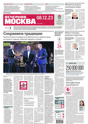 «Вечерняя Москва» — ежедневная российская вечерняя газета, старейшее из вечерних изданий в России, учрежденное в 1923 году. Выходит пять дней в неделю, кроме субботы и воскресенья. Отличается тем, что рассказывает о событиях еще не завершившегося дня. Оперативно освещает хронику и особенности жизни Москвы, охватывает все слои общества и большинство профессиональных и возрастных групп читателей.Издание представлено тремя выпусками – утренним ежедневным, вечерним (выходит три раза в неделю), еженедельным (выходит по четвергам).