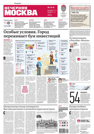 «Вечерняя Москва» — ежедневная российская вечерняя газета, старейшее из вечерних изданий в России, учрежденное в 1923 году. Выходит пять дней в неделю, кроме субботы и воскресенья. Отличается тем, что рассказывает о событиях еще не завершившегося дня. Оперативно освещает хронику и особенности жизни Москвы, охватывает все слои общества и большинство профессиональных и возрастных групп читателей.Издание представлено тремя выпусками – утренним ежедневным, вечерним (выходит три раза в неделю), еженедельным (выходит по четвергам).