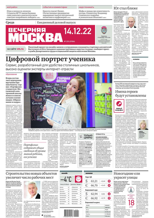Вечером на страницах «Вечерки» появляются эксклюзивные интервью ньюсмейкеров культуры и шоу-бизнеса, репортажи журналистов по вечерней Москве, афиша нашего города. Один раз в неделю выходит специальный студенческий вечерний номер.