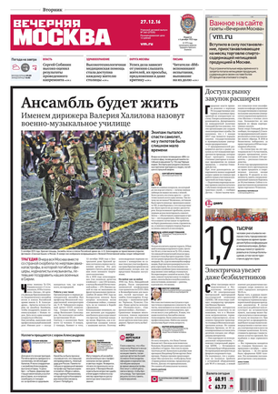 Еженедельный выпуск «Вечерней Москвы» — это значимые события недели, афиша города, новости из сферы отдыха и развлечений, телепрограмма с анонсами и комментариями, авторские колонки журналистов и авторитетные мнения экспертов, детская страничка, специальная рубрика «Золушка», интересные репортажи о необычных судьбах московских жителей, постоянные конкурсы и викторины.