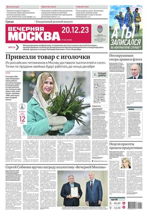 «Вечерняя Москва» — ежедневная российская вечерняя газета, старейшее из вечерних изданий в России, учрежденное в 1923 году. Выходит пять дней в неделю, кроме субботы и воскресенья. Отличается тем, что рассказывает о событиях еще не завершившегося дня. Оперативно освещает хронику и особенности жизни Москвы, охватывает все слои общества и большинство профессиональных и возрастных групп читателей.Издание представлено тремя выпусками – утренним ежедневным, вечерним (выходит три раза в неделю), еженедельным (выходит по четвергам).