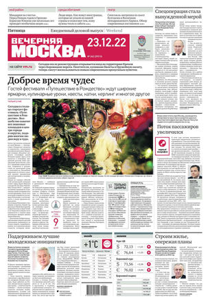 «Вечерняя Москва» — ежедневная российская вечерняя газета, старейшее из вечерних изданий в России, учрежденное в 1923 году. Выходит пять дней в неделю, кроме субботы и воскресенья. Отличается тем, что рассказывает о событиях еще не завершившегося дня. Оперативно освещает хронику и особенности жизни Москвы, охватывает все слои общества и большинство профессиональных и возрастных групп читателей.Издание представлено тремя выпусками – утренним ежедневным, вечерним (выходит три раза в неделю), еженедельным (выходит по четвергам).