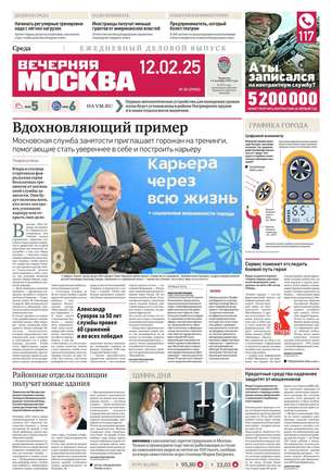 «Вечерняя Москва» — ежедневная российская вечерняя газета, старейшее из вечерних изданий в России, учрежденное в 1923 году. Выходит пять дней в неделю, кроме субботы и воскресенья. Отличается тем, что рассказывает о событиях еще не завершившегося дня. Оперативно освещает хронику и особенности жизни Москвы, охватывает все слои общества и большинство профессиональных и возрастных групп читателей.Издание представлено тремя выпусками – утренним ежедневным, вечерним (выходит три раза в неделю), еженедельным (выходит по четвергам).